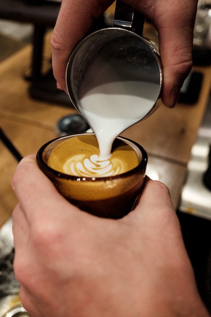 What you’ll need: an espresso machine with a steam wand, coffee ground for espresso (freshly ground is preferred!), a milk pitcher, and a milk of your choice! Keep in mind, however, that whole milk will result in the best latte art due to the higher fat content. Another thing to note is that latte art is only possible with coffee brewed as espresso. So how does it work? Let’s start with espresso.